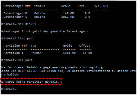 Diskpart: Es wurde keine Partition gewählt | Warum und wie zu beheben?
