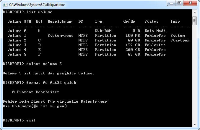 Echter Fall: Das Volume ist für FAT32 zu groß