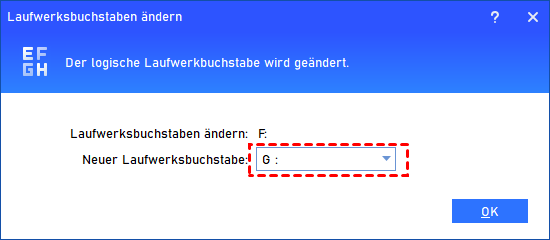 Schritt 4. Danach wählen Sie den neuen Laufwerksbuchstaben aus der Dropdown-Liste und klicken auf OK.