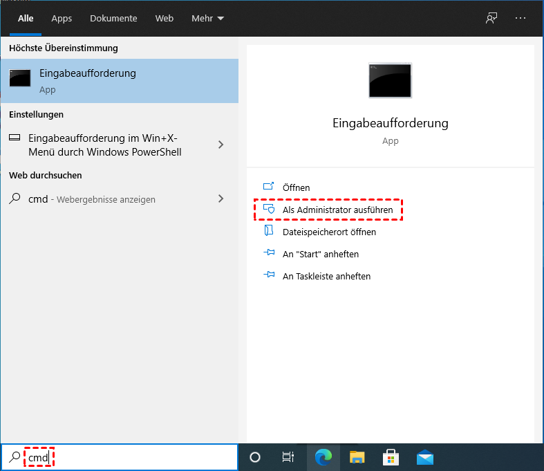 Schritt 1. Zur Verwendung der Befehlszeile müssen Sie erst die Eingabeaufforderung öffnen.