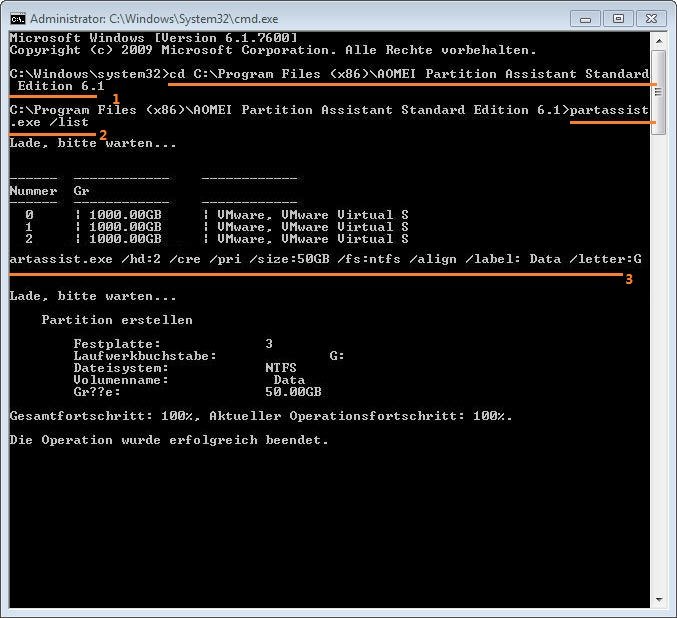 AOMEI partassist.exe verwendet sehr einfache Befehle und ist daher einfacher als DiskPart zu verwenden. Sie müssen nicht jedes Mal jede Festplatte auflisten, sondern können dies einfach mit den vollständigen Befehlen tun. Weitere Informationen zur Verwendung der Befehlszeile von AOMEI Partition Assistant finden Sie hier.