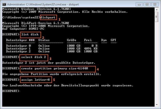 DiskPart bietet drei Arten von Partition, dann steht es drei verschiedene Befehle zur Verfügung.