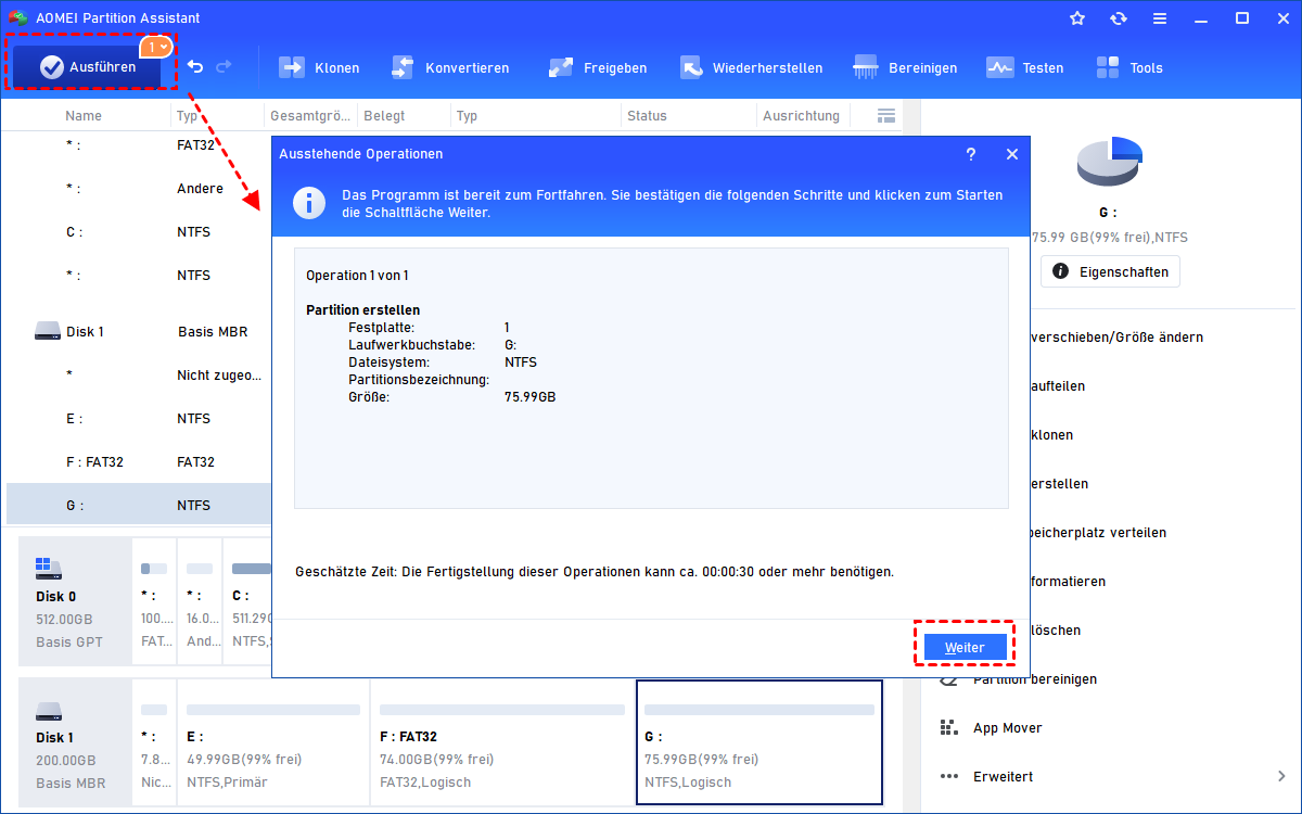Um eine Partition mit CMD zu erstellen, kann AOMEI Partition Assistant es in einfacheren Befehlen tun. Sie können die Schritte im nächsten Inhalt verfolgen.