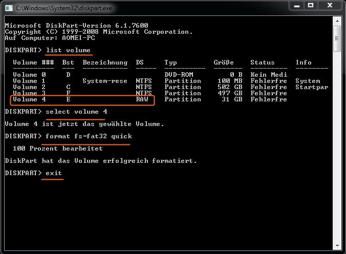 RAW in FAT32 mit CMD konvertieren