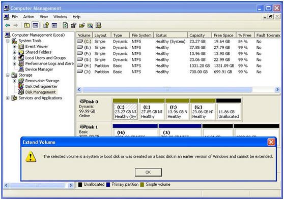 Ich habe ein Windows 2003 32-Bit-Server und wenig Speicherplatz auf dem Laufwerk C. Jedes Mal, wenn ich versuche, das Laufwerk C zu erweitern, erhalte ich die Fehlermeldung „Das ausgewählte Volume ist ein System oder ein Startdatenträger oder wird auf Basisdatenträger in einer früheren Version von Windows und kann nicht erweitert werden“. Gibt es eine Möglichkeit, dieses Problem zu lösen und das Laufwerk C erfolgreich zu erweitern?