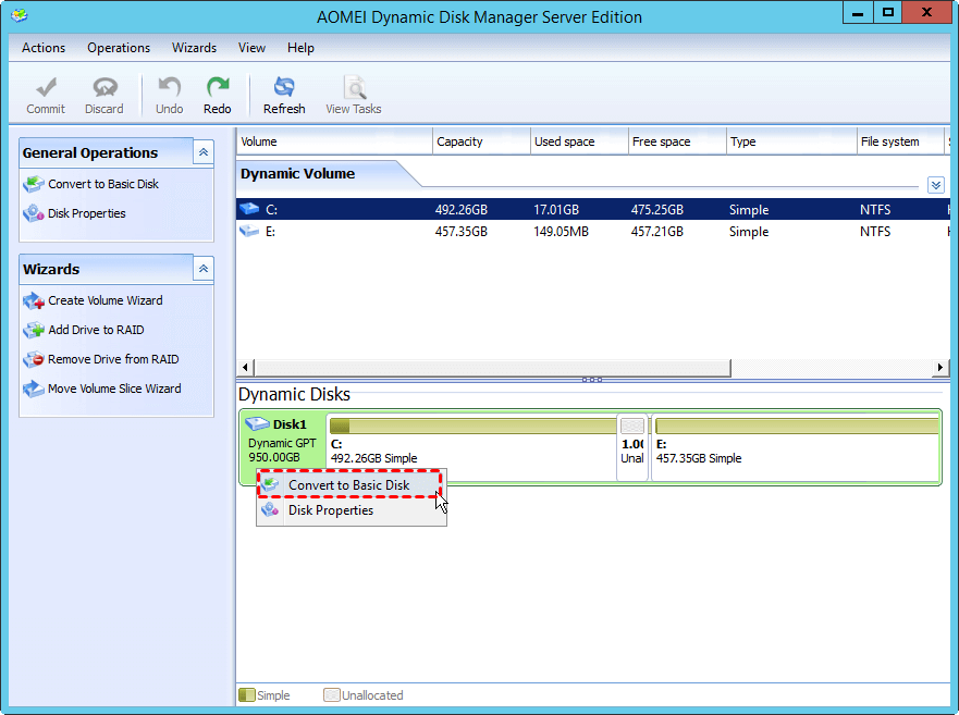 Diese Partitionsverwaltungssoftware ist mit allen Windows Servern und Windows-PCs kompatibel. Damit können Sie eine dynamische Festplatte zurück in eine Basis konvertieren und dann die Systempartition erweitern. Im Folgenden wird Schritt für Schritt gezeigt, wie es geht. Für eine kostenlose Testversion können Sie die Demoversion herunterladen.