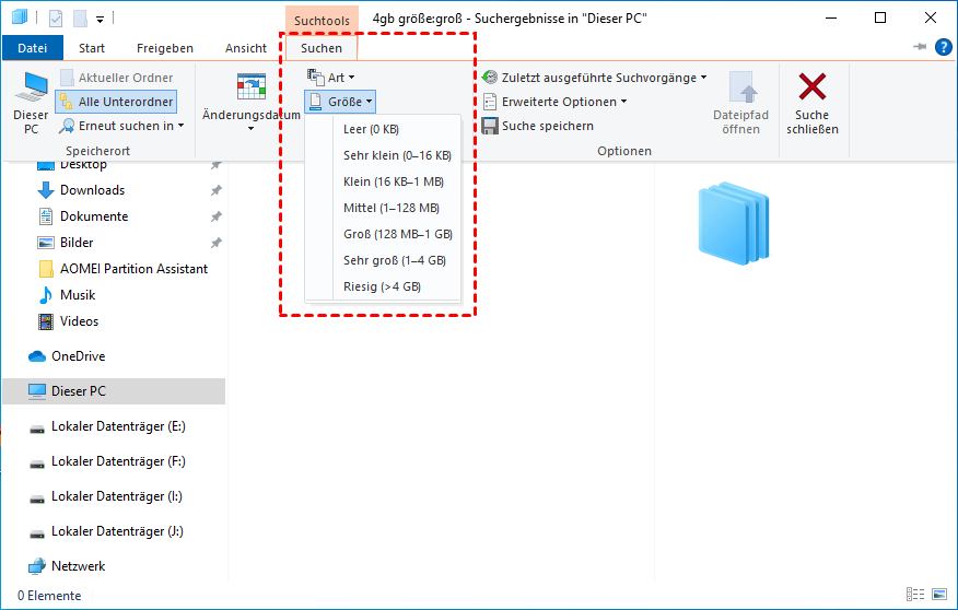 Methode 1. Auf Festplatte nach großen Dateien durchsuchen mit Datei-Explorer