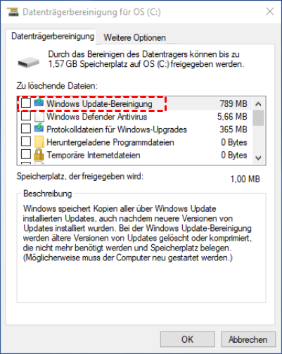 Methode 1. Windows 10 Update-Dateien löschen über Datenträgerbereinigung