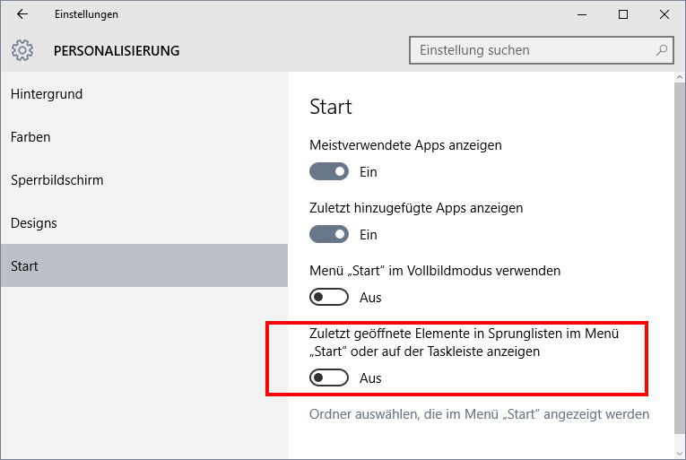 Weg 1. Sprungliste auf der Start- oder Taskleiste deaktivieren
