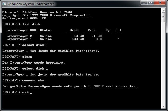 Bevor Sie beginnen, müssen Sie wissen, dass Diskpart Sie dazu auffordert, alle Partitionen auf der Festplatte zu löschen und dann die GPT-Schutzpartition in MBR umzuwandeln. Wenn sich wichtige Daten auf der Festplatte befinden, sollten Sie daher ein Backup erstellen.