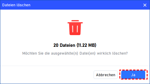 Die Datei/der Ordner wird in den Papierkorb des Computers verschoben. Sie können den Papierkorb öffnen, um die Datei/den Ordner vollständig zu löschen oder wiederherzustellen.