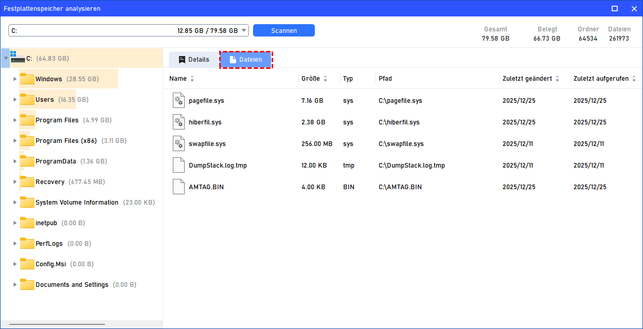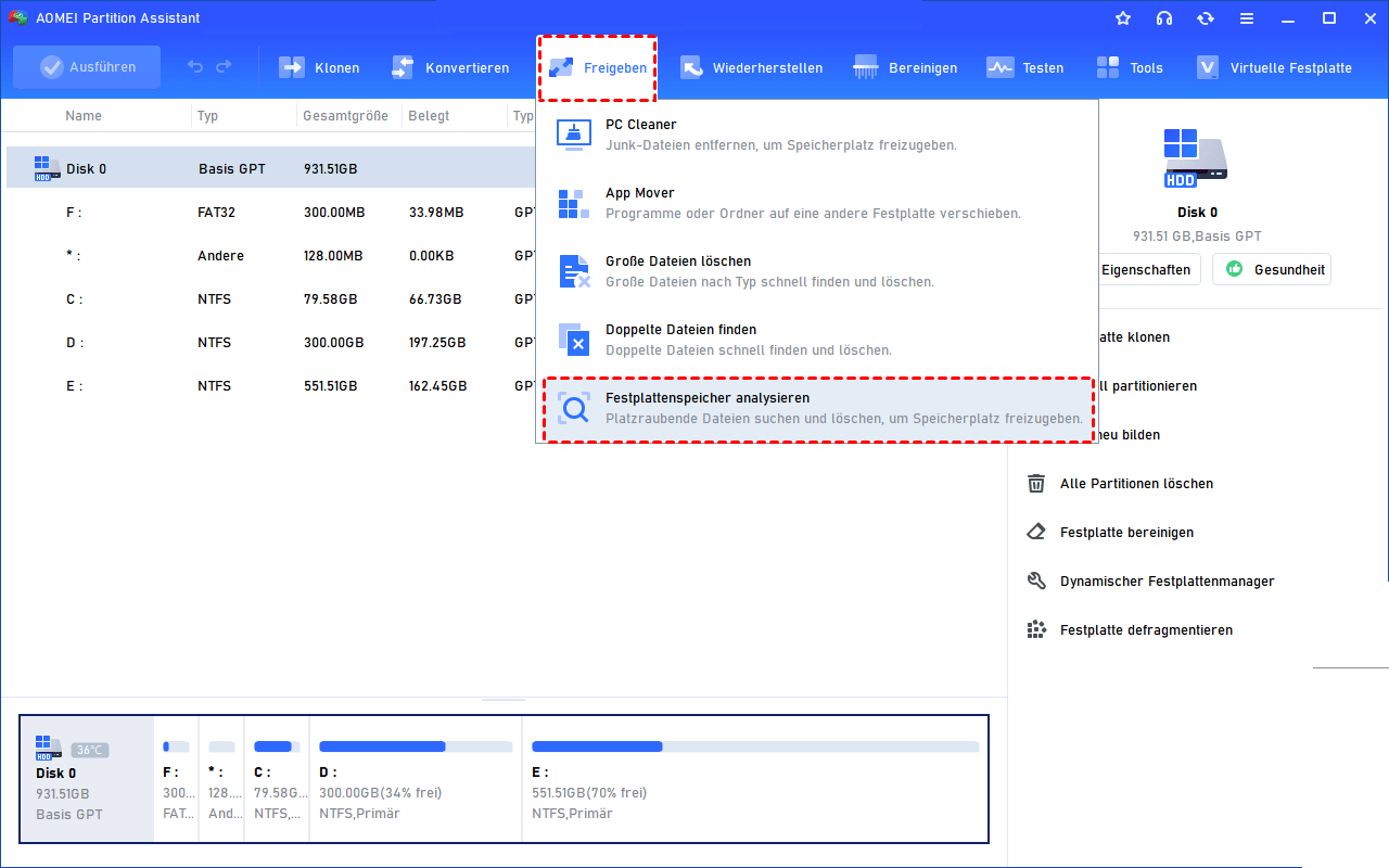 Wie man mit AOMEI Partition Assistant Speicherplatz analysiert und freigibt