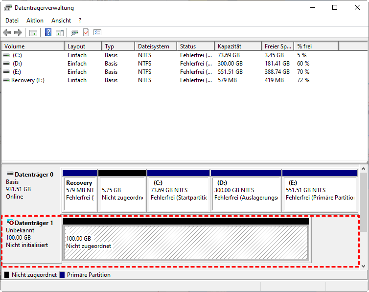 Oder initialisieren Sie es in der Windows-Datenträgerverwaltung.