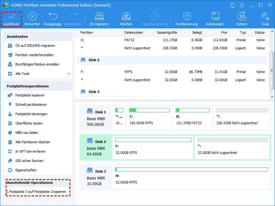 Mit AOMEI Partition Assistant können Sie einfach bootfähigen USB-Stick auf anderen USB-Stick klonen. Darüber hinaus können Sie damit bootfähigen USB erstellen, bootfähigen USB-Stick formatieren, wenn es nötig ist.