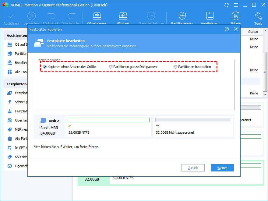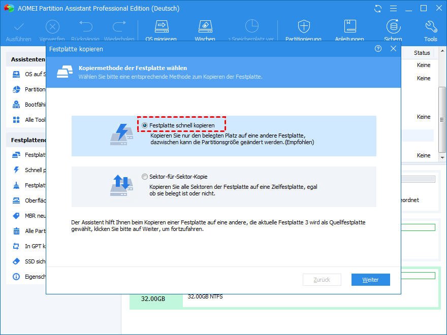 Es ist enttäuschend, dass Windows keinen direkten Weg zum Festplattenklon bietet. Um den Prozess erfolgreich zu machen, benötigen Sie eine professionelle bootfähige USB-Klonen-Software. Unter Hunderten von verfügbaren Software ist AOMEI Partition Assistant Professional einer der besten.