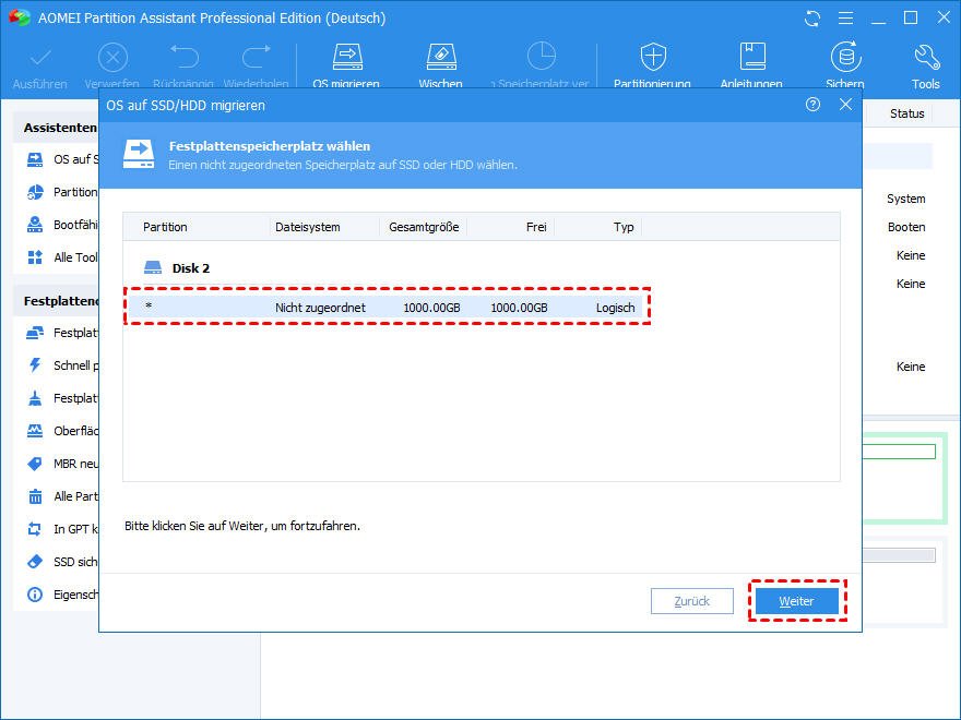 Schritt 2. Wählen Sie die Ziel-SSD aus und klicken Sie auf Weiter.