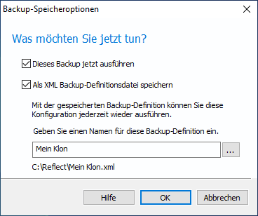 Schritt 7. Sie können die von Ihnen angegebenen Optionen überprüfen, bevor der Klon beginnt. Und wählen Sie „Fertigstellen“, um fortzufahren. Es wird ein Fenster mit den Optionen „Dieses Backup jetzt ausführen“ oder „Als Backup-Definitionsdatei speichern“ angezeigt. Durch das Speichern des Klons als Backup-Definitionsdatei kann derselbe Klon in Zukunft problemlos erneut ausgeführt werden.