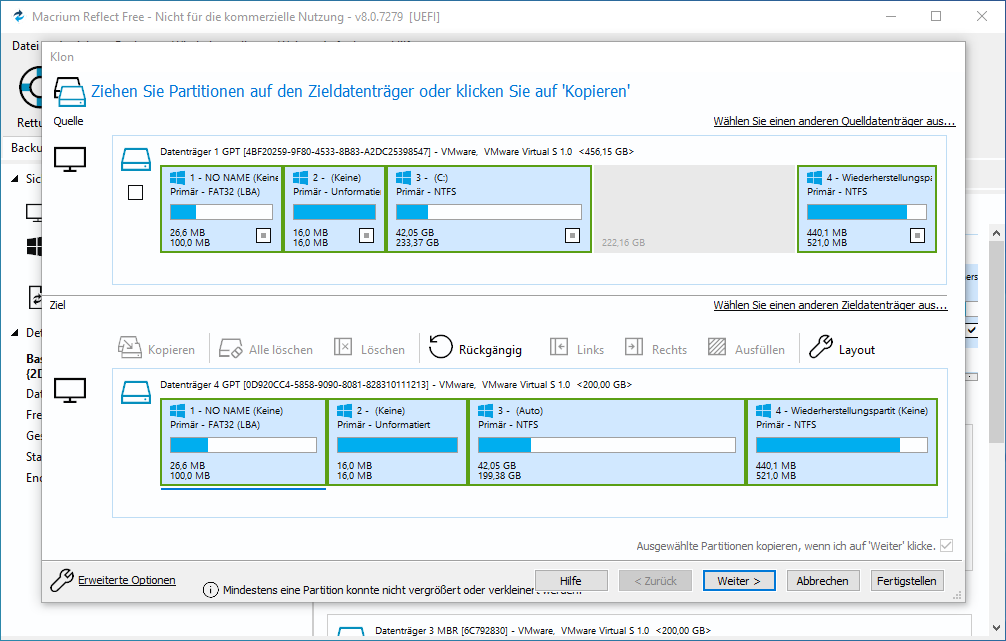- eine größere Festplatte auf eine kleinere Festplatte klonen;