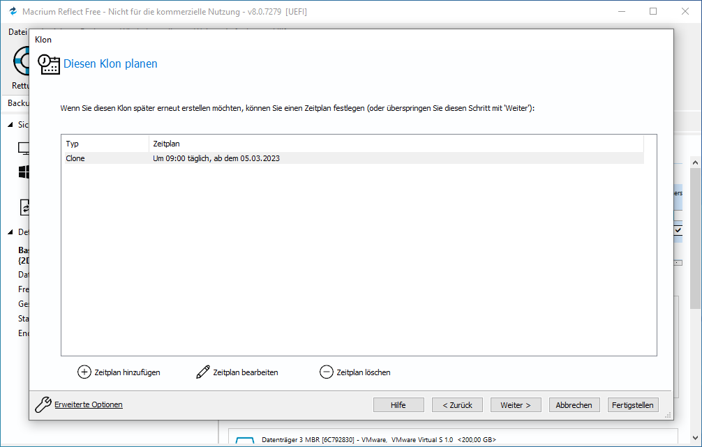 Schritt 6. Auf dieser Seite können Sie einen Zeitplan für den Klon erstellen. Wenn ein Zeitplan erstellt wird, wird der Klon automatisch ohne weitere Benutzerinteraktion ausgeführt, wenn die geplante Zeit erreicht ist.