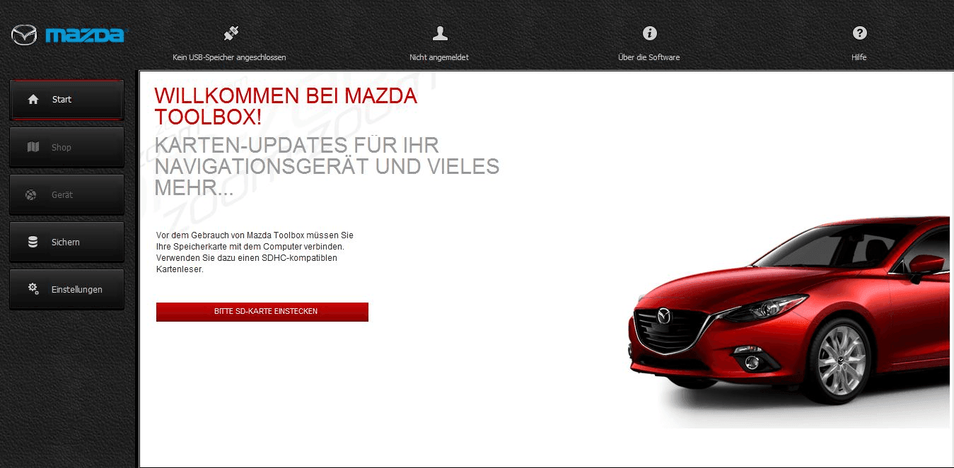 1. Verbinden Sie die Navi SD-Karte mit Ihrem PC und melden Sie sich bei Mazda Toolbox an.