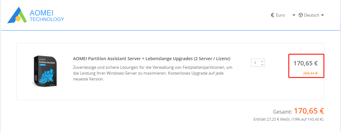 Es wird speziell für Windows Server entwickelt, kann die Festplatte sicher partitionieren und die Computerleistung optimieren.