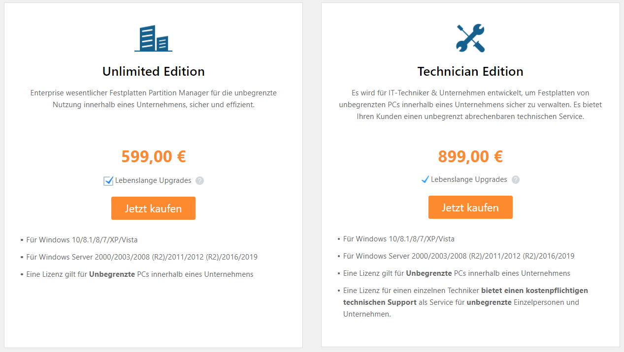 Enterprise wesentlicher Festplatten Partition Manager für die unbegrenzte Nutzung innerhalb eines Unternehmens, sicher und effizient.