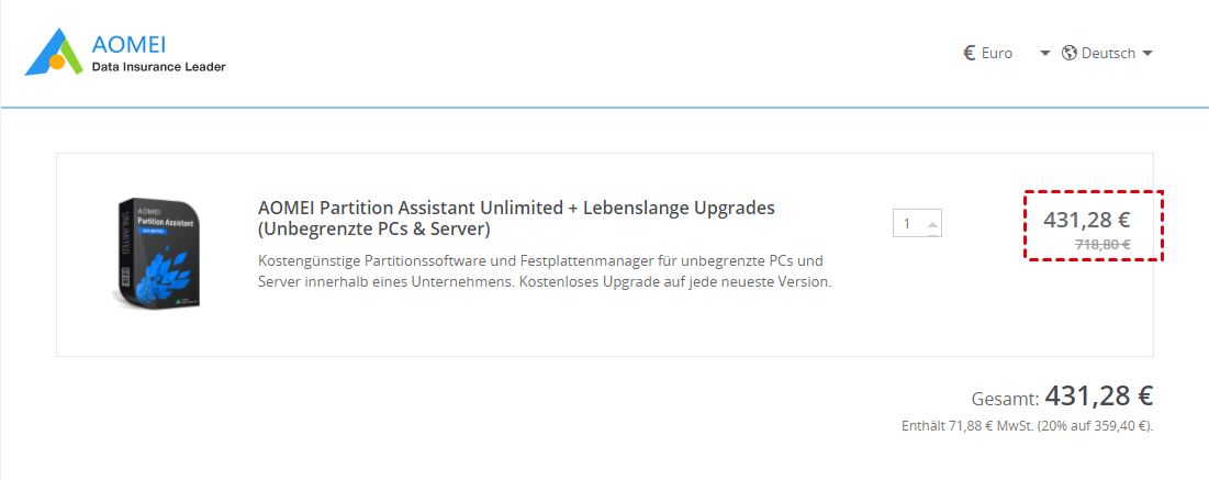 Upgrade-Richtlinie: Kleinere Updates sind kostenlos. Für die wichtigsten Upgrades müssen Sie nur eine geringe Upgrade-Gebühr entrichten, um alle Vorteile der neueren Versionen nutzen zu können. Wenn Sie bereits "Lebenslange Upgrades" gekauft haben, können Sie in Zukunft ohne zusätzliche Kosten auf die neueste Version upgraden. Mehr erfahren