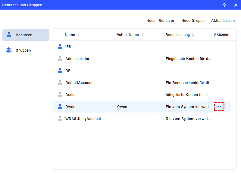 3. Suchen Sie das Benutzerkonto, das entfernt werden soll, und klicken Sie auf die Drei-Punkte-Schaltfläche für die Löschung.