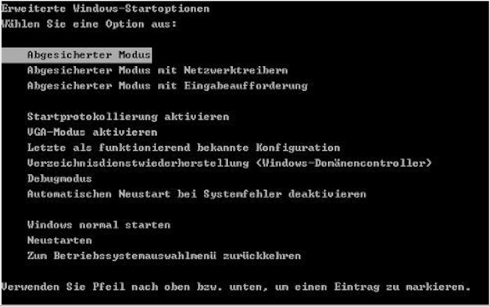 Schritt 1. Starten Sie Ihren Laptop neu, drücken Sie kontinuierlich F8, bis Erweiterte Windows-Startoptionen erscheint, und wählen Sie dann Abgesicherter Modus.