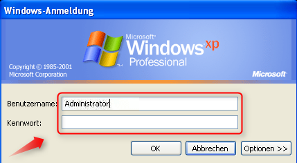 Hinweis: Diese Methode funktioniert nur, wenn Sie kein Windows XP-Administratorkennwort festgelegt haben.