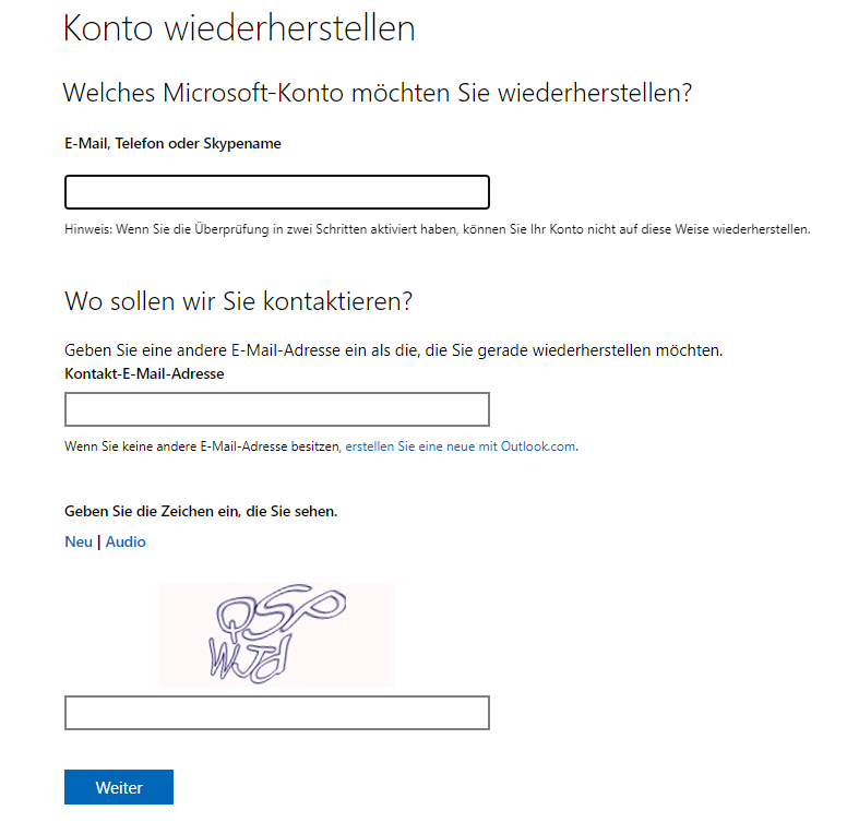 2. Microsoft-Konto online wiederherstellen