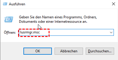 Schritt 1. Drücken Sie „Windows + R“, geben Sie dann „lusrmgr.msc“ ein und klicken Sie auf „OK“.