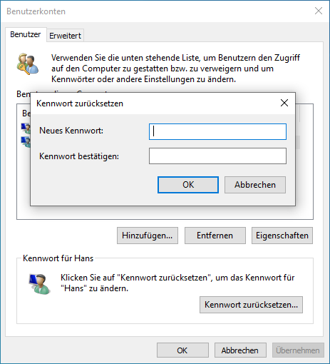 Weg 2. Windows 10 Passwort entfernen mit dem Benutzerkonto