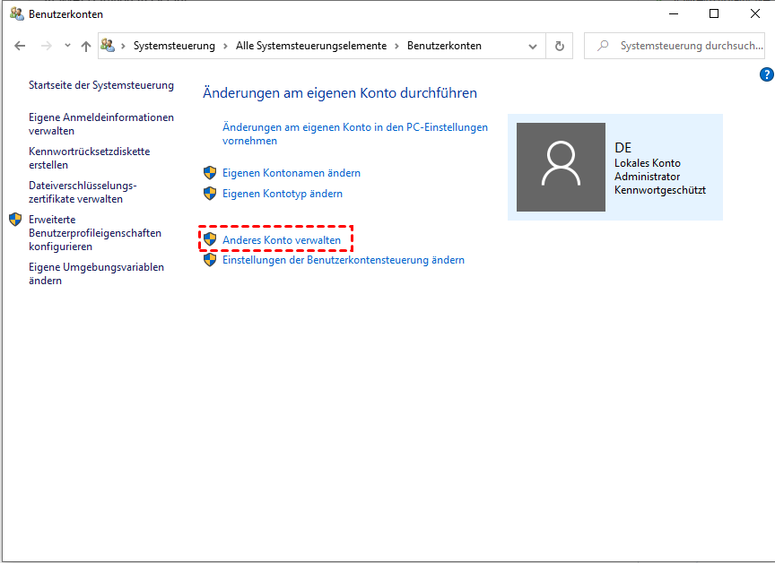 1. Öffnen Sie die Systemsteuerung → Benutzerkonten → Anderes Konto verwalten.