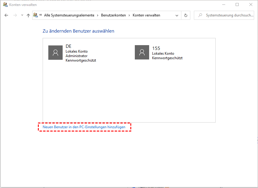 2. Klicken Sie auf Neuen Benutzer in den PC-Einstellungen hinzufügen.