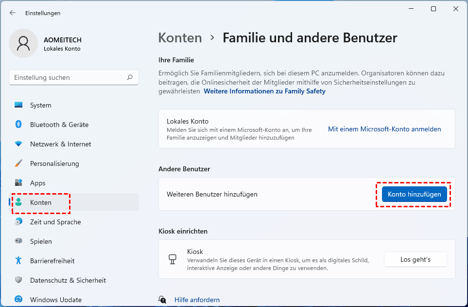 Schritt-für-Schritt: Neuen Benutzer anlegen in Windows 11 mit AOMEI Partition Assistant