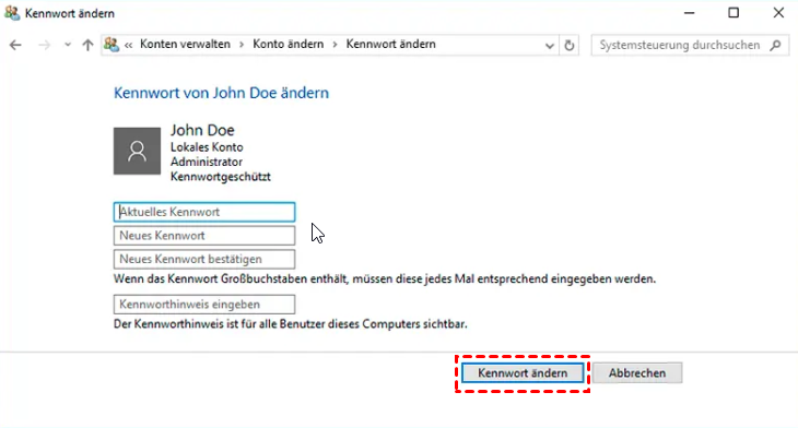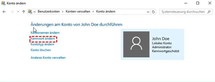 Wenn Sie Ihr aktuelles Kennwort noch kennen, können Sie es über die Systemsteuerung löschen.