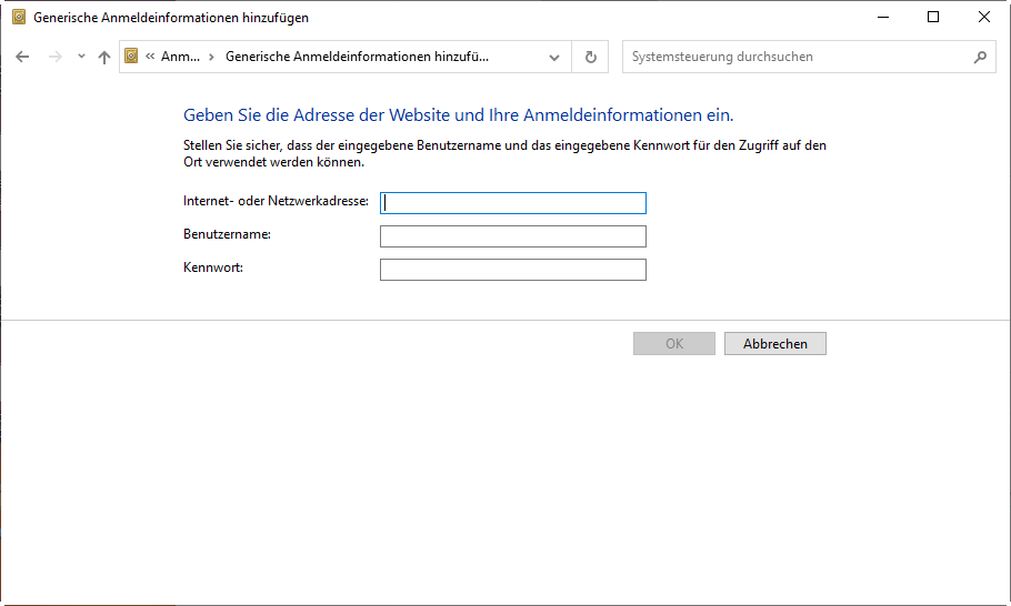 Schritt 2. Klicken Sie auf Windows-Anmeldeinformatitionen > Generische Anmeldeinformationen hinzufügen.