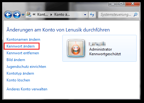 Schritt 4. Klicken Sie dann auf Kennwort ändern, um das Windows 7-Passwort zu ändern.