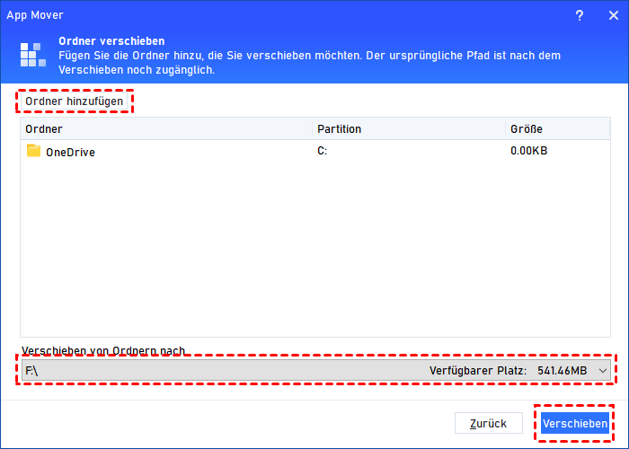 Schritt 2. Klicken Sie im neuen Fenster auf „Ordner verschieben“.