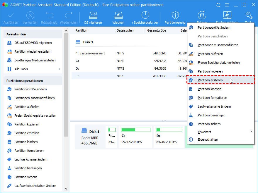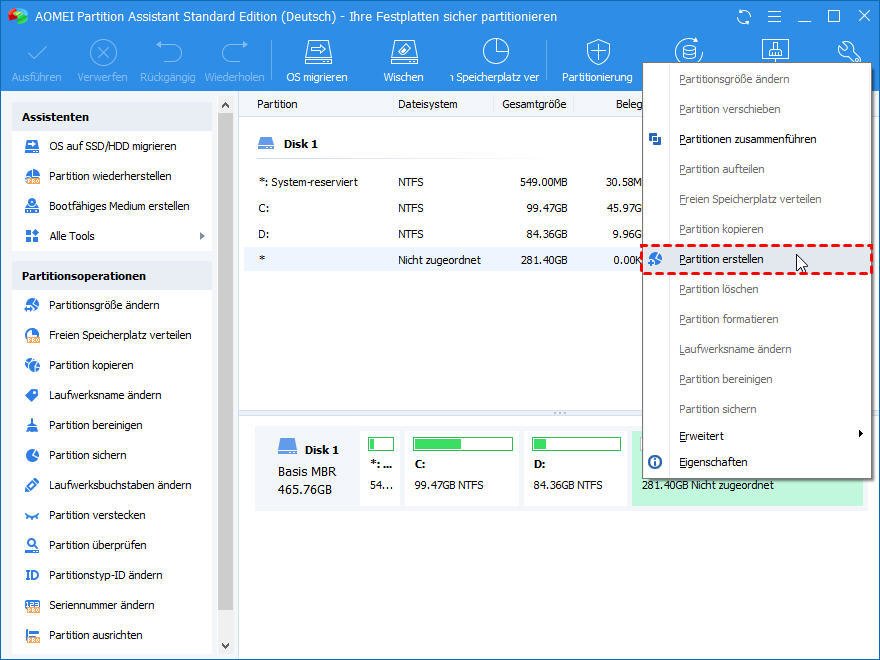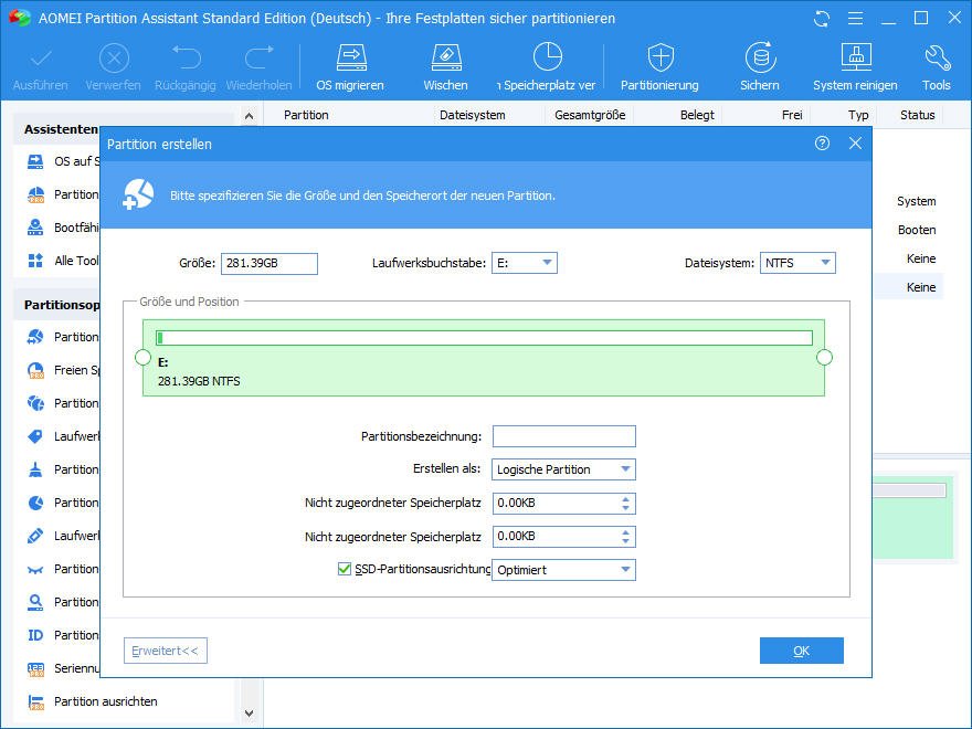 Eine Partition mit Partition Assistant Free Edition erstellen