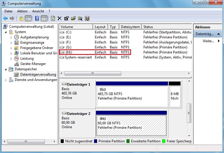 Schau mal die detaillierten Schritte der Konvertierung des Dateisystems. Wie konvertiert man eine externe Partition von 60 GB aus NTFS zu FAT32? Unten ist unsere 60 GB NTFS-Partition.