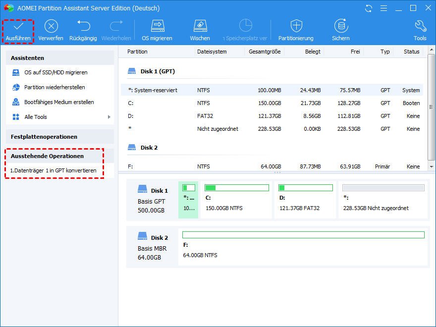 Systemfestplatte in GPT konvertieren - Detaillierte Schritte