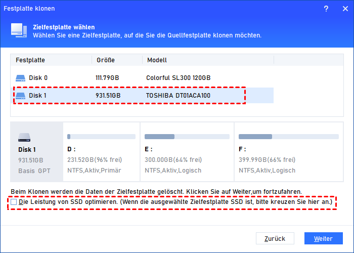 Hinweis: Sie können hier auch die Option „Sektor-für-Sektor-Klon“ basierend auf Ihrer eigenen Situation oder Anforderungen aktivieren.