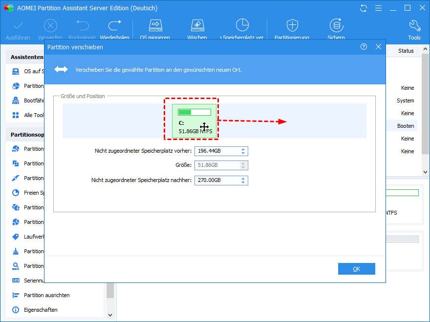 Im nächsten Schritt ziehen Sie einfach die Partition an die richtige Stelle.