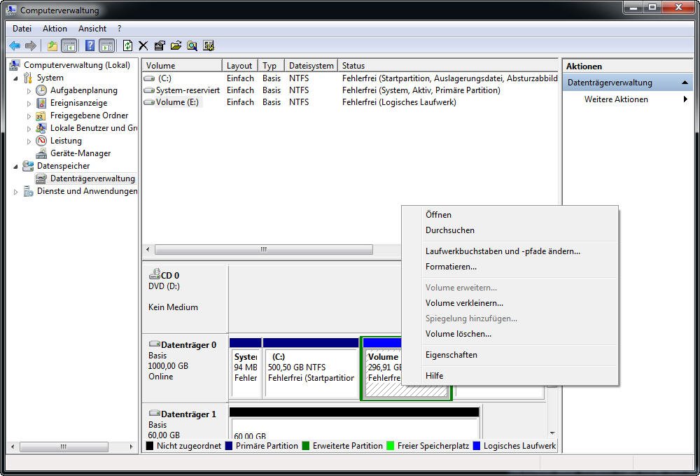 Obwohl die Datenträgerverwaltung die Funktion "Volume erweitern" anbietet, kann sie nur unter bestimmten Bedingungen funktionieren. Wenn nämlich die Struktur Ihrer Festplattenpartition die Bedingungen erfüllt, können Sie die ausgewählte Partition mit dieser Funktion erfolgreich erweitern. Andernfalls wird die Option „Volume erweitern“ ausgegraut.