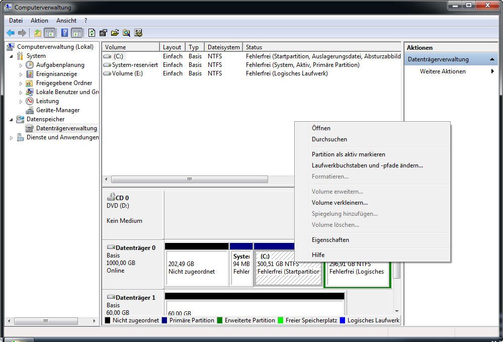 Wenn auf der rechten Seite der Zielpartition kein freier Speicherplatz mehr vorhanden ist, kann die Option „Volume erweitern“ nicht mehr angeklickt werden. Da es in der Datenträgerverwaltung nicht möglich ist, Partitionen zu verschieben, müssen Sie die Partition löschen, die sich direkt hinter der Partition befindet, die Sie erweitern möchten. Danach wird die Option „Volume erweitern“ in der Datenträgerverwaltung verfügbar sein. Zuvor sollten Sie jedoch sicherstellen, dass die zu löschende Partition gesichert ist.