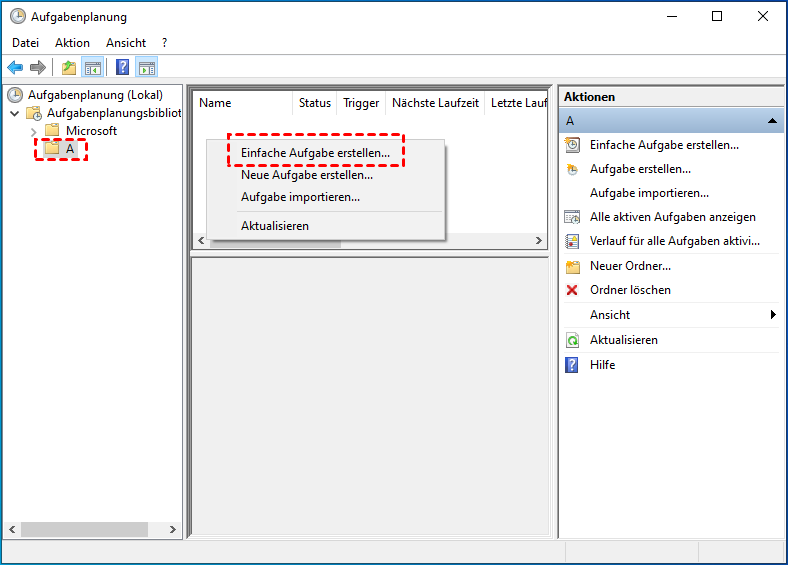 Schritt 3. Klicken Sie dann mit der rechten Maustaste auf den neu erstellten Ordner und wählen Sie Einfache Aufgabe erstellen.