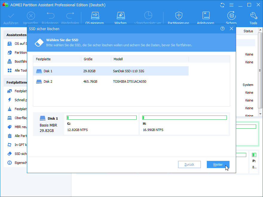 Methode 2: SSD über ein spezielles Tool zum Verkauf sicher löschen