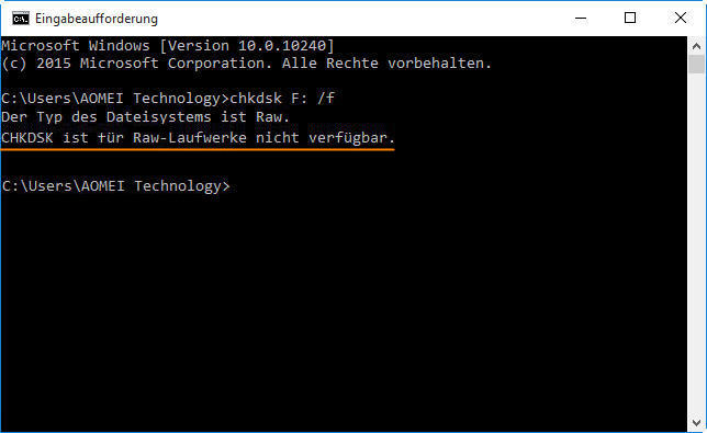 CHKDSK ist für RAW-Laufwerke nicht verfügbar in Win 10